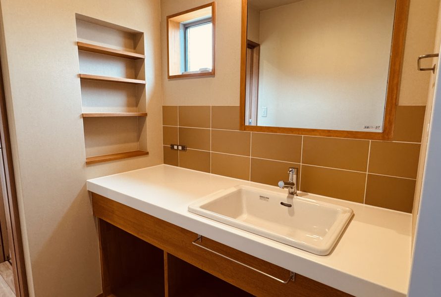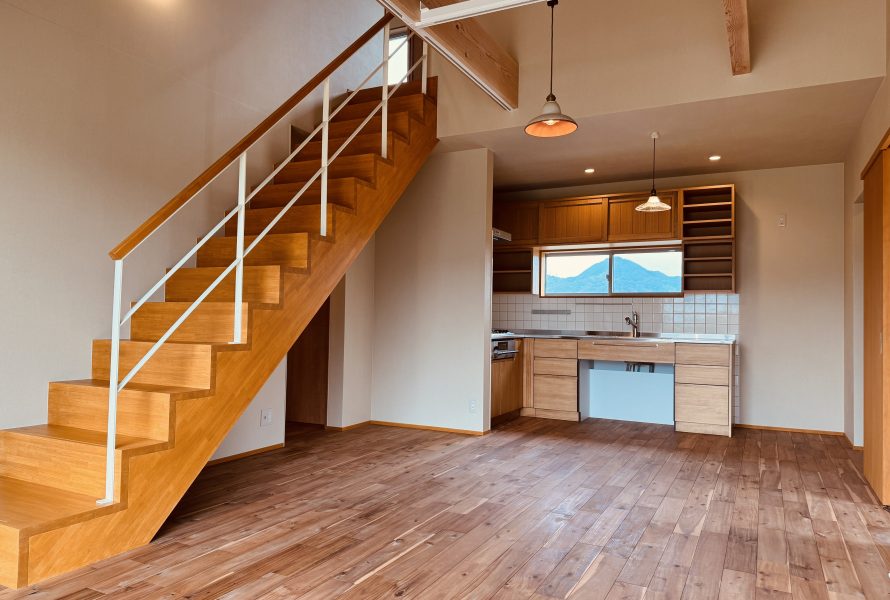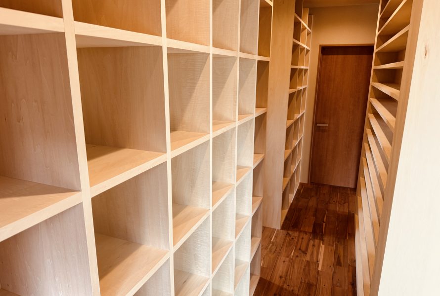 お施主様と一つひとつ丁寧に相談を重ね、暮らし方からかたちにしていきました。外観はシンプルでありながら、室内には無垢の木のぬくもりが広がるやさしい空間。大きな窓からは景色を取り込み、日常に豊かさを添えています。そしてこの住まいの象徴ともいえるのが、お施主様の大切なレコードや本などのために設計された専用収納。「しまう」のではなく「楽しむ」ための収納として設えました。